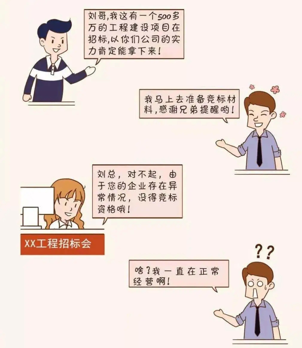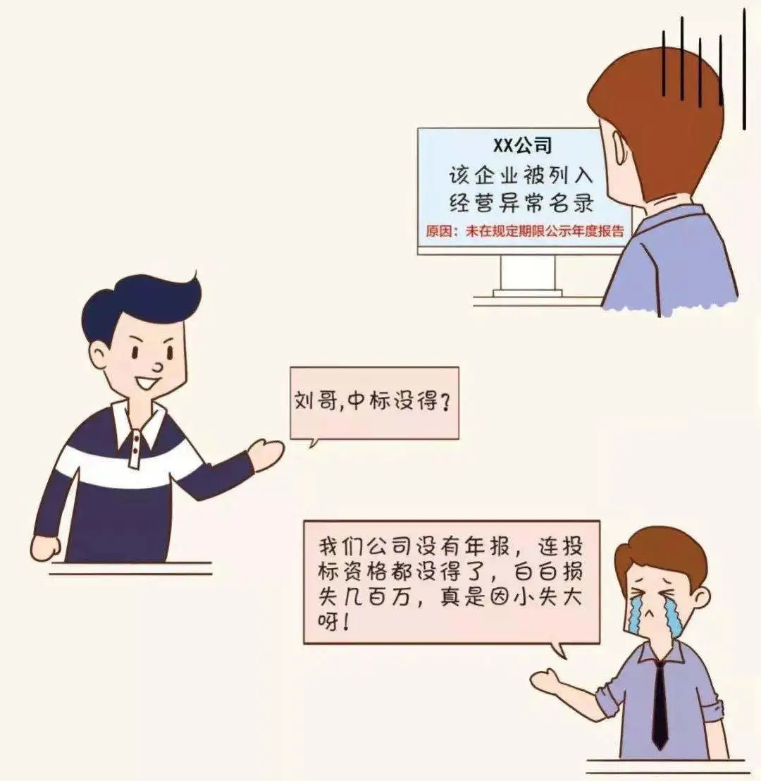 僅剩 7天 02企業合作信用受疑 現在是信用社會,信用對于人和企業來說都至關重要,大家都喜歡和有信用的人交往、合作。 被列入經營異常名錄,你看看誰還找你合作! 03經營活動受限 經營異常名錄信息現在也是 銀行等金融機構貸款、擔保等金融活動的 參考依據 老板 你好,我去年年報忘記報,現在被列入經營異常名錄,本來想著在阿里巴巴注冊一個網店,在網上做點小生意,結果被告知因為企業是經營異常名錄,注冊不了,這可怎么辦呀! 你好,首先應在國家企業信用信息公示系統補報年報,然后再準備好相關材料去當地市場監管部門申請移出哦。 小編 老板 好的,萬萬沒想到沒報年報的后果竟然這么嚴重,嚴重影響了我的經營活動,我真是后悔莫及。 是的,企業被列入經營異常名錄,那就有了信用污點,必須高度重視哦!對了,2019年度的年報馬上也要截止啦,請及時申報哦。 小編 老板 2019年度的年報我們公司馬上準備申報了,經過這次,以后一定不會忘了及時年報! 建議您盡早進行年報,避免因月底網站擁堵或企業自身數據方面準備不充分造成年報延遲。 小編 04列入嚴重違法企業名單 最最最嚴重的后果來啦! 列入經營異常名錄三年還沒有履行信息公示義務的企業,將被列入嚴重違法失信企業名單 企業五年內不能申請移出嚴重違法失信名單,法定代表人、負責人也將受到牽連,三年內不得擔任其他企業的法定代表人、負責人! 企業一站式服務平臺 工商注冊、財稅代賬、審計評估、稅務籌劃、商標專利、資質審批、人才獵頭、人才報名、金融保險、信用評級、法務咨詢、項目申報 公司網站:www.blzdsf.cn 聯系方式:400-0551-976 合肥總部:安徽省合肥市南一環與馬鞍山路交口恒興廣場A座24樓 分部:合肥市行政服務中心一樓“萬業公司代理窗口”(工商局窗口正對面) 分部:合肥市瑤海區行政服務中心一樓“萬業公司代理窗口”(工商局窗口正對面)
