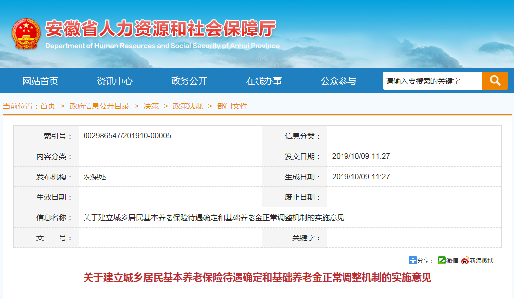 日前,為推動(dòng)城鄉(xiāng)居民基本養(yǎng)老保險(xiǎn)待遇水平隨經(jīng)濟(jì)發(fā)展逐步提高,確保參保居民共享經(jīng)濟(jì)社會(huì)發(fā)展成果,確定完善待遇確定機(jī)制、建立基礎(chǔ)養(yǎng)老金正常調(diào)整機(jī)制調(diào)整個(gè)人繳費(fèi)檔次及繳費(fèi)補(bǔ)貼標(biāo)準(zhǔn)、實(shí)現(xiàn)個(gè)人賬戶基金保值增值,省人社廳與省財(cái)政廳聯(lián)合下發(fā)《關(guān)于建立城鄉(xiāng)居民基本養(yǎng)老保險(xiǎn)待遇確定和基礎(chǔ)養(yǎng)老金正常調(diào)整機(jī)制的實(shí)施意見》。