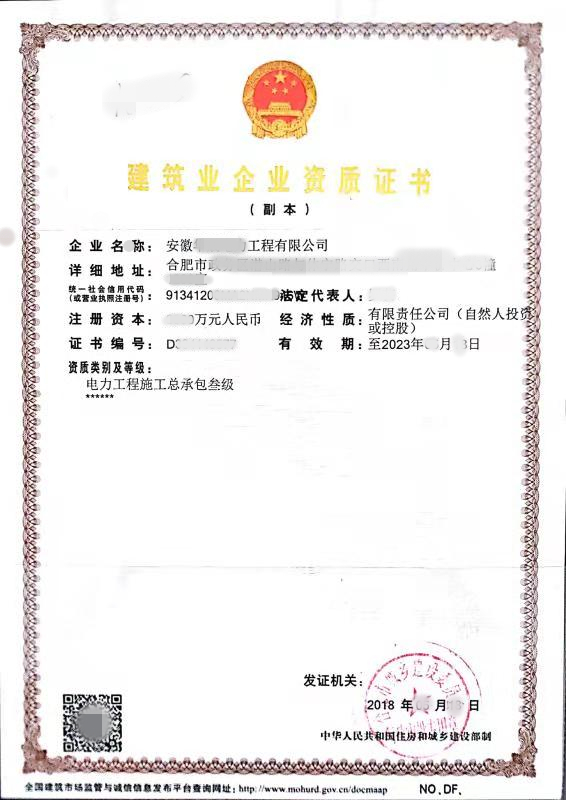 名稱:建筑企業(yè)資質(zhì)證書(shū)